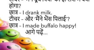 पप्पू – आज मैं अपनी बीवी से बहुत खुश हूँ! दोस्त – क्यों? पप्पू – उसने आज पूरा दिन कुछ नहीं कहा… नेटवर्क डाउन था!😊😊😊😊 *********************************************** टीचर – ‘मैंने दूध पिया’ का इंग्लिश में क्या होगा? छात्र – I drank milk. टीचर – और ‘मैंने भैंस पिलाई’? छात्र – I made buffalo happy!😊😊😊😊 *********************************************** सास – बहू, खाना क्यों जला …