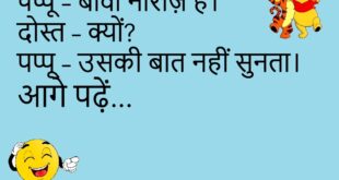 पप्पू – डॉक्टर साहब, मैं भूलने लगा हूँ। डॉक्टर – कब से? पप्पू – कौन सी बीमारी?😊😊😊😊 *********************************** बबलू – यार, तुम्हारी बीवी हमेशा हँसती रहती है। पप्पू – हँसती नहीं, मुस्कुराती है… मुझे खुश करने के लिए।😊😊😊😊 *********************************** टीचर – बच्चो, सबसे बड़ा आदमी कौन है? बच्चा – जो सुबह बिस्तर ठीक करे।😊😊😊😊 *********************************** पप्पू – मम्मी, मुझे गुस्सा …