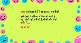 बहू- मांजी मैंने सोचा है कि मैं धनतेरस पर गोल्ड के चार आइटम खरीदूंगी सास- गोल्ड बहुत मंहगा है, वैसे क्या-क्या खरीदेगी तू? बहू- अमूल गोल्ड, प्रिया गोल्ड, मैरी गोल्ड और टाटा टी गोल्ड😆🤣🤣🤣🤣😝😝😝 ************************************************************************************ बहू- मांजी चाय कैसी बनी है? सास- कभी-कभी खुद से ऐसी चाय बन जाती है, जिसे पीकर एहसास होता है कि अगर शाहजहां पी लेता …