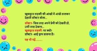 पिता- बेटी अब तुम बड़ी हो गई हो अब तुम्हारी शादी कर देते हैं, बेटी- जी पापा पिता- बताओ तुम्हें कैसा लड़का चाहिए? बेटी शरमाते हुए बोली- पिंक कलर का……😆🤣🤣🤣🤣😝😝😝 ************************************************************************************ बेटी- पापा कहा हो आप? पिता- ऑफिस हूं, बताओ क्या हुआ? बेटी- कुछ नहीं वो पड़ोस वाली आंटी भाग गयी, तो मम्मी ने बोला पापा से पूछो कि वो …