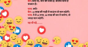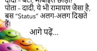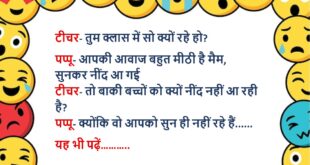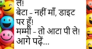 डॉक्टर- बताओ, क्या बीमारी है तुम्हे? सोनू- मुझे रात में नींद नहीं आती, बैचेनी रहती है डॉक्टर- कोई टेंशन है क्या? सोनू- टेंशन तो पूछो मत आप डॉक्टर- शादीशुदा हो सोनू- हां डॉक्टर- रात में टेंशन लेकर नहीं सोना चाहिए सोनू- तो क्या करूं, उसको मायके भेज दूं……😆🤣🤣🤣🤣😝😝😝 ************************************************************************************ सुरेश- उदास क्यों है? मोहन- यार मेरी गर्लफ्रेंड के परिवार वालों …