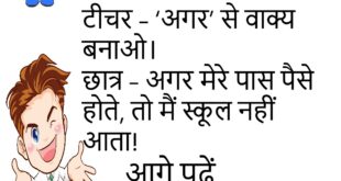 टीचर – तुम स्कूल देर से क्यों आए? छात्र – सपना पूरा कर रहा था, कि मैं टाइम से आया हूँ! ****************************************** बॉस – कल क्यों नहीं आए? कर्मचारी – सर, तबियत खराब थी। बॉस – कौन सी? कर्मचारी – ऑफिस जाने वाली! 😜 ****************************************** टीचर – बताओ 1 किलो लोहे और 1 किलो रूई में कौन भारी है? छात्र …