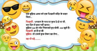 बाबा- तुझे क्या चाहिए? लड़का- खूबसूरत पत्नी बाबा- अगर तू हिन्दू है तो तुझे सोनाक्षी, मुस्लिम है तो कटरीना, सिख है तो अनुष्का और क्रिश्चियन है तो जेनेलिया, बोल तेरा नाम क्या है? लड़का- मोहम्मद विजय सिंह फर्नान्डिस बाबा बेहोश….😆🤣🤣🤣🤣😝😝😝 ************************************************************************************ पति- मैं तुमसे बहुत प्यार करता हूं पत्नी- तो क्या मैं आपसे प्यार नहीं करती? मैं तो आपके लिए …