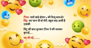 टीचर- अगर तुम अपना कैरेक्टर सुधारना चाहते हो तो अपनी टीचर को मां की तरह समझो पिंकू- लेकिन मैडम इससे तो हमारे पापा का कैरेक्टर खराब होगा टीचर बेहोश……😆🤣🤣🤣🤣😝😝😝 ************************************************************************************ पति के साथ कॉफी हाउस में बैठी पत्नी ने कहा- जल्दी पी लो जी, कॉफी ठंडी हो जाएगी पति- फिर क्या होगा? पत्नी- बेवकूफ हो, मेनू कार्ड तो देखो, हॉट …