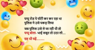 बबलू (अपनी प्रेमिका से)- ऐसा करते हैं, हम दोनों कुछ दिन साथ रहकर देख लेते हैं, अगर कोई गलती हुई तो अलग हो जाएंगे प्रेमिका- और गलती किसके पास रहेगी?😆🤣🤣🤣🤣😝😝😝 ************************************************************************************ पप्पू (गप्पू से)- जब गर्लफ्रेंड हद से ज्यादा बदतमीजी करने लग जाए तो समझ जाओ, वो मानसिक रूप से आपकी पत्नी बनने के लिए तैयार है…..😆🤣🤣🤣🤣😝😝😝 ************************************************************************************ पत्नी- सुनो …