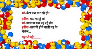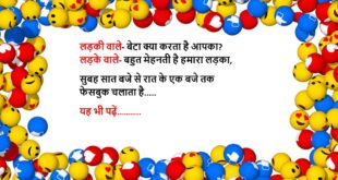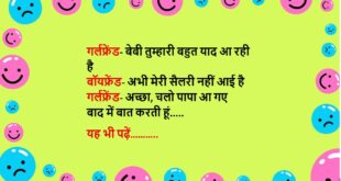 दो सहेलियां अपने-अपने बॉयफ्रेंड की तारीफ कर रही थीं रिंकी- मेरा बॉयफ्रेंड बहुत हैंडसम है पिंकी- मेरे बॉयफ्रेंड का तो कोई बाल भी बांका नहीं कर सकता रिंकी- अच्छा वो इतना बहादुर है? पिंकी- अरे नहीं, वो गंजा है……😆🤣🤣🤣🤣😝😝😝 ************************************************************************************ पत्नी- सुनो जी, आपको नहीं लगता भगवान ने मुझे फुर्सत में बनाया होगा पति- फालतू के काम फुर्सत में ही …