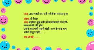 दामाद- महिलाओं को जीवन में बस चार सुख चाहिए ससुर- वो क्या? दामाद- सुंदर काया, पर्स में माया, घर में आया और एक आवाज में पति बोले- मैं अभी आया…..😆🤣🤣🤣🤣😝😝😝 ************************************************************************************ दामाद (ससुर से)- कभी किसी की हाय नहीं लेनी चाहिए ससुर- क्या हुआ? दामाद- सुबह-सुबह पड़ोसन हाय बोल रही थी, मैने ले ली और आपकी बेटी ने देख लिया …