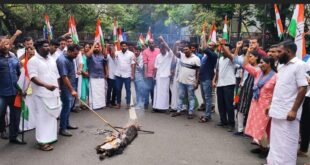 केरल में स्वास्थ्य मंत्री के आवास के बाहर युवा कांग्रेस का विरोध प्रदर्शन