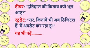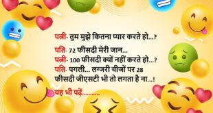 पत्नी: “तुम हमेशा मोबाइल में लगे रहते हो, मुझे टाइम क्यों नहीं देते?” पति: “मैं टाइम दे रहा हूं, वो बस WhatsApp में एंटरटेनमेंट की तरह है”😆🤣🤣🤣🤣😝😝😝 ************************************************************************************ पत्नी: “अगर मैं खो जाऊं तो तुम क्या करोगे?” पति: “मैं अखबार में इश्तिहार दूंगा, ‘खोई हुई पत्नी मिली, साइड डिश के साथ।'”😆🤣🤣🤣🤣😝😝😝 ************************************************************************************ पति: “तुम रोज मुझसे लड़ती क्यों रहती हो?” …