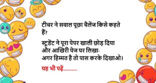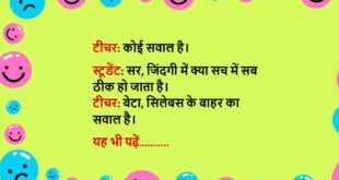 चिंटू खूबसूरत लड़की का हाथ पकड़कर बोला… चिंटू- आई लव यू। तुम दुनिया की सबसे खूबसूरत लड़की हो। लड़की- अच्छा, पर तुम्हारे पीछे मुझसे भी ज्यादा खूबसूरत लड़की खड़ी है। चिंटू- पर अब मैं ये डायमंड रिंग किसको दूं? तभी लड़की भी झट से बोल पड़ी- लो, अब क्या मैं अपने जानू से मजाक भी नहीं कर सकती क्या।😆🤣🤣🤣🤣😝😝😝 ************************************************************************************ …