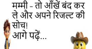 बच्चा – मम्मी, नींद नहीं आ रही! मम्मी – तो आँखें बंद कर ले और अपने रिजल्ट की सोच!😊😊😊😊 *********************************************** पप्पू – सर, मैं आज स्कूल नहीं आऊँगा! टीचर – क्यों? पप्पू – सर, ऑनलाइन क्लास का नेट खत्म हो गया!😊😊😊😊 *********************************************** बॉस – टाइम पर ऑफिस आओ! कर्मचारी – सर, रास्ते में वाई-फाई नहीं मिलता, इसलिए देर हो जाती …