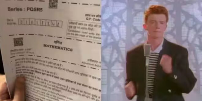 सेंट्रल बोर्ड ऑफ़ सेकेंडरी एजुकेशन (**CBSE**) की 9 मार्च, 2026 को हुई क्लास 12 की मैथ्स की परीक्षा में बहुत मज़ा आया और यह वायरल हो गई, जब स्टूडेंट्स ने पाया कि कुछ क्वेश्चन पेपर सेट पर छपे QR कोड को स्कैन करने पर रिक एस्टली के 1987 के हिट गाने **”नेवर गोना गिव यू अप”** के मशहूर YouTube म्यूज़िक वीडियो पर रीडायरेक्ट हो जाता है—यह क्लासिक इंटरनेट प्रैंक **”रिकरोल”** के नाम से जाना जाता है।