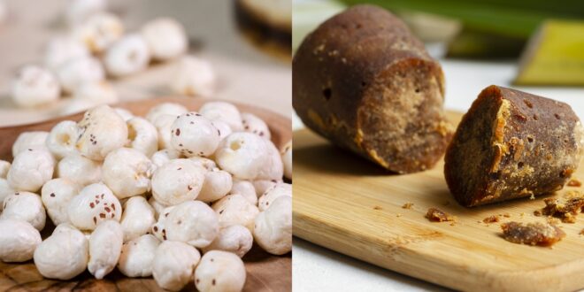 मखाना और गुड़ दोनों ही कम कैलोरी वाले खाद्य पदार्थ हैं। मखाना में प्रोटीन और फाइबर अधिक होता है, जिससे भूख कम लगती है और पेट लंबे समय तक भरा रहता है। इससे वजन नियंत्रण में मदद मिलती है। गुड़ शरीर को डिटॉक्सिफाई करता है, जिससे मेटाबॉलिज्म तेज होता है।