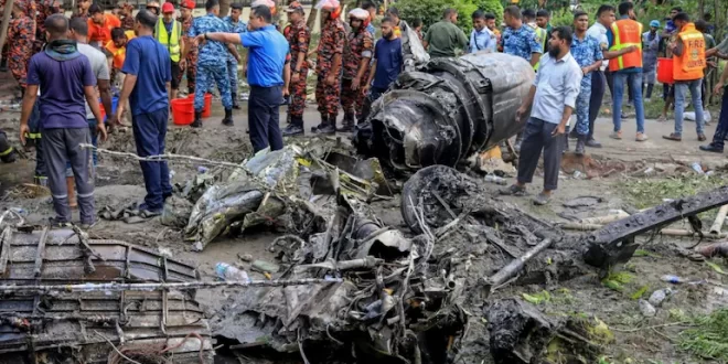 बांग्लादेश की राजधानी ढाका सोमवार को एक भयावह हादसे का गवाह बनी, जब बांग्लादेश एयरफोर्स का ट्रेनिंग फाइटर जेट F-7 BGI क्रैश होकर माइलस्टोन स्कूल और कॉलेज की इमारत से टकरा गया। हादसा दोपहर करीब 1:30 बजे हुआ, जब स्कूल में क्लासेस चल रही थीं और सैकड़ों छात्र मौजूद थे। हादसे में अब तक 22 लोगों की मौत हो चुकी है, जिनमें 10 बच्चे शामिल हैं, जबकि 170 से ज्यादा लोग घायल हुए हैं।