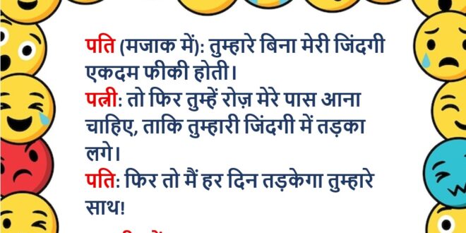 पत्नी: तो फिर तुम्हें रोज़ मेरे पास आना चाहिए, ताकि तुम्हारी जिंदगी में तड़का लगे।