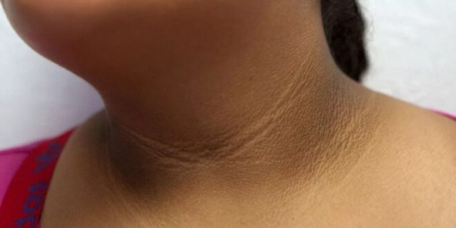 गर्दन पर काली लाइन या काली त्वचा बनने की स्थिति को मेडिकल भाषा में एकैंथोसिस नाइग्रिकन्स (Acanthosis Nigricans) कहा जाता है। यह अक्सर शरीर में इंसुलिन रेजिस्टेंस से जुड़ी होती है और कई बार डायबिटीज का शुरुआती संकेत भी हो सकती है।