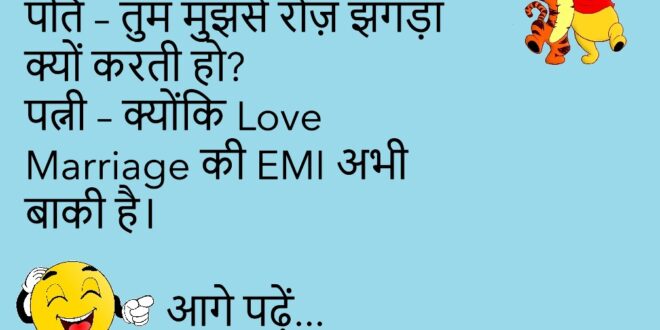 पत्नी – क्योंकि Love Marriage की EMI अभी बाकी है।😊😊😊😊😊