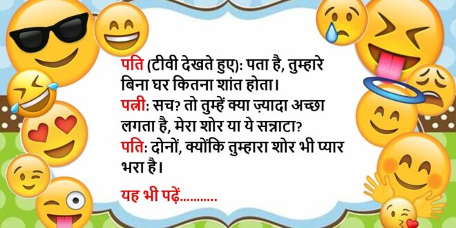 पति (टीवी देखते हुए): पता है, तुम्हारे बिना घर कितना शांत होता।