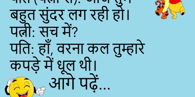 पति: हाँ, वरना कल तुम्हारे कपड़े में धूल थी।😂😂😂