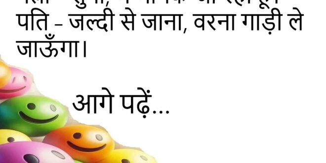 पति – जल्दी से जाना, वरना गाड़ी ले जाऊँगा।😊😊😊😊