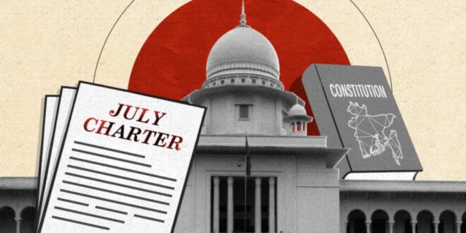 चार्टर का मुकुट रत्न: द्विसदनीय पुनर्गठन, राष्ट्रीय मतों के आनुपातिक प्रतिनिधित्व (पीआर) के माध्यम से 100 सदस्यीय उच्च सदन का जन्म—यह सुनिश्चित करना कि कभी प्रभावशाली रहे निचले सदन में अल्पसंख्यकों की आवाज़ गूंजे। संवैधानिक बदलावों के लिए अब उच्च सदन के बहुमत की मंज़ूरी ज़रूरी है, जिससे कार्यपालिका के अतिक्रमण पर अंकुश लगता है। सुधारों के अंतिम चरण के 30 दिनों के भीतर गठित यह विधेयक निचले सदन के कार्यकाल की समाप्ति तक लागू रहेगा, जिसमें स्थिरता और गहन जाँच का समावेश है। यूनुस ने इसे बीएनपी और जमात-ए-इस्लामी सहित 25 हस्ताक्षरकर्ता दलों की “ऐतिहासिक सहमति” बताया, हालाँकि एनसीपी ने बहिष्कार की निंदा की।
