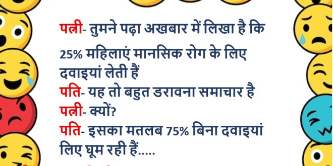 पति- इसका मतलब 75% बिना दवाइयां लिए घूम रही हैं…..😆🤣🤣🤣🤣😝😝😝