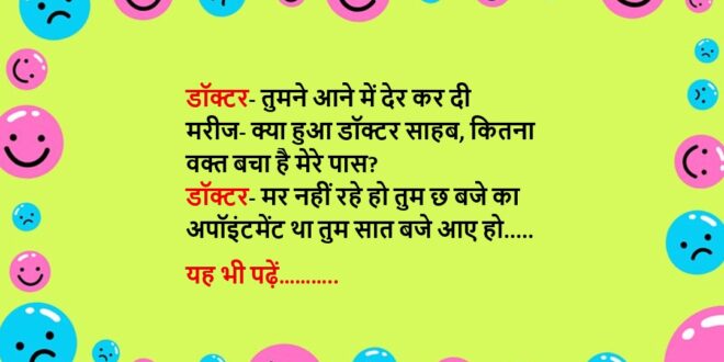 डॉक्टर- मर नहीं रहे हो तुम छ बजे का अपॉइंटमेंट था तुम सात बजे आए हो…..😆🤣🤣🤣🤣😝😝😝