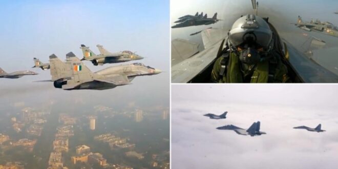 हिंदुस्तान टाइम्स, ज़ी न्यूज़, रेडिफ और अन्य मीडिया रिपोर्ट्स के अनुसार, जो आधिकारिक सूत्रों का हवाला देते हैं, **भारतीय वायु सेना (IAF)** द्वारा **गणतंत्र दिवस 2026** फ्लाईपास्ट के दौरान एक विशेष **”सिंदूर” फॉर्मेशन** दिखाने का दावा सही है। इस फॉर्मेशन में **दो राफेल जेट**, **दो Su-30 MKI**, **दो MiG-29 फाइटर** और **एक जगुआर** विमान शामिल होंगे—ये सभी **ऑपरेशन सिंदूर** में शामिल प्लेटफॉर्म हैं। यह हवाई प्रदर्शन 2025 की घटनाओं के बाद भारत की हवाई शक्ति, एकजुटता और ऑपरेशनल तैयारी का प्रतीक है। पूरे फ्लाईपास्ट में लगभग 29 विमान शामिल होंगे, जिसमें अन्य फॉर्मेशन में ट्रांसपोर्ट (C-130, C-295), समुद्री (P-8I) और हेलीकॉप्टर (अपाचे, LCH, ALH, Mi-17) शामिल होंगे।