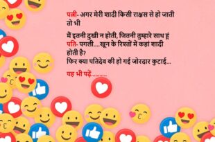 गर्लफ्रेंड- अगर मैं एग्जाम में फेल हो गई तो, मेरे पापा मेरी शादी किसी रिक्शावाले से करा देंगे बॉयफ्रेंड- अरे वाह, फिर तो ठीक है गर्लफ्रेंड- वो कैसे? बॉयफ्रेंड- क्योंकि मेरे पापा ने कहा है कि, अगर मैं फेल हुआ तो मुझे रिक्शा खरीद देंगे…..😆🤣🤣🤣🤣😝😝😝 ************************************************************************************ बॉयफ्रेंड- तुने दिल जला कर मेरा राख कर दिया गर्लफ्रेंड- तेरी कुर्बानी बेकार नहीं …