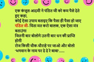 लड़का (लड़की से)- क्यों परेशान हो? लड़की- अगर मैं फेल हुई तो मेरे पापा मेरी शादी रिक्शे वाले से करा देंगे लड़का-वाह, मेरे पापा ने भी कहा कि अगर मैं फेल हुआ तो मुझे रिक्शा दिला देंगे…..😆🤣🤣🤣🤣😝😝😝 ************************************************************************************ गांव से एक लड़का शहर पढ़ने आया एक लड़की ने पूछा- तुम्हारा निकनेम क्या है? लड़का- वो क्या होता है? लड़की- मतलब …