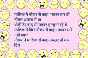 टीचर (चिंटू से)- चलो खड़े होकर x की वैल्यू बताओ? चिंटू- सर जान थी वो मेरी, बहुत याद आती है उसकी चिंटू की बात सुनकर टीचर ने की जमकर कुटाई…..😆🤣🤣🤣🤣😝😝😝 ******************************************************************************************* पति- आज ऐसी चाय बनाओ कि पीते ही तन बदन झूमने लगे और मन नाचना शुरू कर दें पत्नी- हमारे यहां भैंस का दूध आता है नागिन का नहीं….😆🤣🤣🤣🤣😝😝😝 …