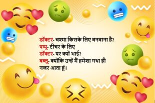 मिंकी- देख तेरे पति की सेक्रेटरी उनको ही देखे जा रही है… चिंकी- मुझे पता है. पर मैं तो ये देखना चाहती हूं कि मेरा पति कितनी देर तक अपनी तोंद को अंदर दबाकर रख सकता है…😜😂😂😂😛🤣 ************************************************************************************************* एक आदमी अपने ससुराल गया उसकी सास ने 7 दिन तक पालक का साग खिलाया फिर 8वें दिन सास बोली- बेटा क्या …