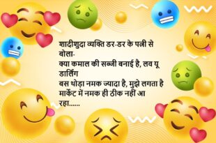 देवर शराब पीकर घर आया और भाभी के सामने रोने लगा भाभी- रो क्यों रहे हो देवर जी? देवर- जिस लड़की को भूलने के लिए पी रहा था, उसका नाम ही याद नहीं आ रहा……😆🤣🤣🤣🤣😝😝😝 ************************************************************************************* दामाद- आपकी बेटी में तो हजारों कमियां हैं, सास- हां दामाद जी, इसी वजह से तो उसे अच्छा लड़का नहीं मिला…..😆🤣🤣🤣🤣😝😝😝 ************************************************************************************* शादीशुदा व्यक्ति …
