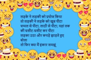एक आदमी संडे को डॉक्टर के पास गया। आदमी- डॉक्टर साहब मेरी पत्नी मुझे कुछ समझती ही नहीं है हर समय चिड़-चिड़ करती रहती है, मेरा जरा भी नहीं सुनती क्या आप उसे शांत कर सकते हैं? डॉक्टर- अबे यह सब इतना आसान होता तो क्या मैं संडे को क्लिनिक खोलकर बैठता….😆🤣🤣🤣🤣😝😝😝 ****************************************************************************************** पिंकी- तुम्हारी सफलता का क्या कारण है? …