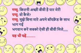 एक लड़का और लड़की पिकनिक पर गए लड़के को वहां चोट लग गयी और खून बहने लगा लड़के ने फिल्मों में बहुत बार देखा था, तो वो लड़की की तरफ देखने लगा उसने सोचा कि लड़की अभी अपना दुपट्टा फाड़ कर बांधेगी लड़की ने लड़के की तरफ देखा और बोली- सोचना भी मत 6000 का सूट है……😆🤣🤣🤣🤣😝😝😝 ************************************************************************************ पति-पत्नी में …