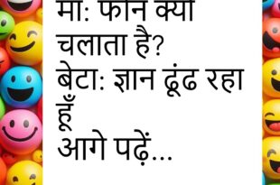 बीवी: तुम मुझे मिस करते हो? पति: हाँ। WiFi की तरह 😆 ***************************************** दोस्त: तू उदास क्यों है? मैं: नेट स्लो है 😂 ***************************************** डॉक्टर: वजन क्यों बढ़ रहा है? मरीज: दवाई मीठी है 😜 ***************************************** माँ: फोन क्यों चलाता है? बेटा: ज्ञान ढूंढ रहा हूँ 😂