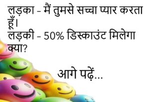 मुर्गा – अंडा देने जा रहा हूँ। मुर्गी – जरा टाइम पर देना, कस्टमर खड़ा है!😊😊😊😊😊 ******************************************* बबलू – इतने खुश क्यों हो? गोलू – बीवी मायके चली गई!😊😊😊😊😊 ******************************************* लड़का – मैं तुमसे सच्चा प्यार करता हूँ। लड़की – 50% डिस्काउंट मिलेगा क्या?😊😊😊😊😊 ******************************************* जज – तुमने चोरी क्यों की? चोर – सर, चोरी करना मेरी हॉबी है!😊😊😊😊😊 ******************************************* …