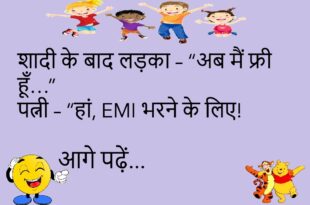 पत्नी – मुझे न्यू ईयर पर क्या गिफ्ट दोगे? पति – तुम्हारा WhatsApp DP बदल दूँगा।😊😊😊😊 ********************************************** बच्चा – पापा, पढ़ाई क्यों करनी चाहिए? पापा – ताकि शादी के बाद बीवी की डाँट समझ आ सके।😊😊😊😊 ********************************************** गर्लफ्रेंड – मैं नाराज़ हूँ। बॉयफ्रेंड – ठीक है, जियो की तरह ऑफर निकाल दो।😊😊😊😊 ********************************************** पति – मैं तुम्हें चाँद तोड़कर लाऊँगा। …