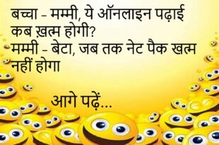 टीचर – अगर तुम्हें 100 करोड़ मिल जाए तो क्या करोगे? बच्चा – नेट रिचार्ज कराऊँगा।😊😊😊😊 ********************************************** डॉक्टर – दवा खा ली? मरीज – जी, फोटो खा लूँ क्या?😊😊😊😊 ********************************************** पत्नी – तुम मुझे कितना प्यार करते हो? पति – उतना ही जितना नेट पैक बचाना चाहता हूँ।😊😊😊😊 ********************************************** बच्चा – मम्मी, ये शादी क्या होती है? मम्मी – बेटा, …