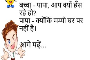 बच्चा – पापा, आप क्यों हँस रहे हो? पापा – क्योंकि मम्मी घर पर नहीं है।😊😊😊😊 ********************************************** पत्नी – ये बिल इतना क्यों आया? पति – तुम्हारे ऑनलाइन शॉपिंग के कारण।😊😊😊😊 ********************************************** पप्पू – सर, नींद क्यों आती है? टीचर – क्योंकि व्हाट्सएप रात में जागाता है।😊😊😊😊 ********************************************** पति – मैं बड़ा आदमी बनूँगा। पत्नी – हाँ, बस पेट से।😊😊😊😊 …