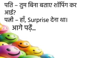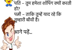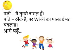 पत्नी – देखो जी, मेरा वजन बढ़ गया। पति – तो क्या हुआ, Gold का दाम भी बढ़ता है। 😉 ******************************************** बच्चा – मम्मी, मुझे WhatsApp पर पढ़ाई करनी है। मम्मी – बेटा, पढ़ाई किताब से होती है। बच्चा – पर होमवर्क तो WhatsApp पे आता है। 😂 ******************************************** पति – तुम्हें मेरी सबसे अच्छी आदत कौन सी लगती है? …