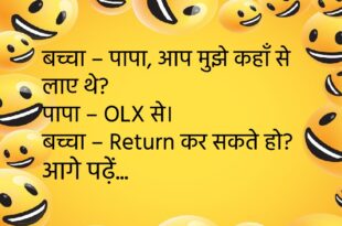 टीचर – एक तरफ अमीरी, दूसरी तरफ गरीबी, बताओ बीच में क्या होगा? पप्पू – रोड! 😂 ******************************************** पत्नी – मुझे नया फोन चाहिए। पति – क्यों? पत्नी – पुराने वाले में तुम्हारे कॉल ब्लॉक नहीं हो रहे। 🤣 ******************************************** बच्चा – पापा, आप मुझे कहाँ से लाए थे? पापा – OLX से। बच्चा – Return कर सकते हो? 😅 …