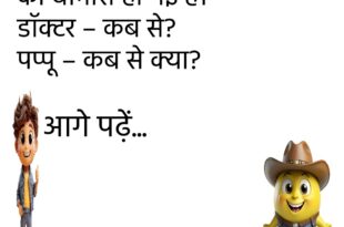 पप्पू – डॉक्टर साहब, मुझे भूलने की बीमारी हो गई है। डॉक्टर – कब से? पप्पू – कब से क्या? 🤔 ******************************************** टीचर – बताो सबसे ईमानदार कौन है? पप्पू – ऑनलाइन शॉपिंग वाली साइट, पैसे पहले लेती है, सामान बाद में भेजती है। 😂 ******************************************** पत्नी – सुनो जी, मुझे गोवा घूमने जाना है। पति – ठीक है, जाकर …