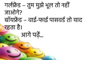 गर्लफ्रेंड – तुम मुझे भूल तो नहीं जाओगे? बॉयफ्रेंड – वाई-फाई पासवर्ड तो याद रहता है।😊😊😊😊 ********************************* बच्चा – मम्मी, मैं बड़ा होकर क्या बनूँगा? मम्मी – शादीशुदा।😊😊😊😊 ********************************* बॉस – लेट क्यों आए? कर्मचारी – सर, नींद से रिश्ता गहरा है।😊😊😊😊 ********************************* पत्नी – मुझे डायमंड चाहिए। पति – WhatsApp पर भेज दूँ?😊😊😊😊 ********************************* टीचर – बताओ ‘जिंदगी’ क्या …