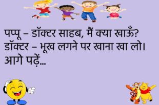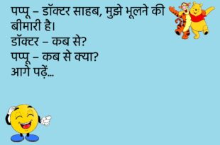 पप्पू – डॉक्टर साहब, मुझे भूलने की बीमारी है। डॉक्टर – कब से? पप्पू – कब से क्या?😊😊😊😊 ********************************* टीचर – बताओ भारत की राजधानी क्या है? पप्पू – सर, थोड़ी देर पहले तो दिल्ली थी… अब शायद बदल गई होगी।😊😊😊😊 ********************************* गर्लफ्रेंड – मैं तुमसे बहुत प्यार करती हूँ। बॉयफ्रेंड – हाँ, मैंने भी सुना है कि प्यार अंधा …