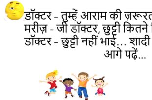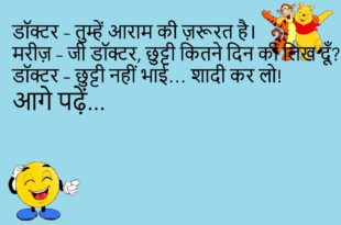 पत्नी – सुनो जी, मैं कैसी लग रही हूँ? पति – अगर सच बोलूँ तो झगड़ा हो जाएगा, और झूठ बोलूँ तो पाप। 🤣 **************************************************** डॉक्टर – आपको आराम चाहिए। मरीज़ – डॉक्टर साहब, आराम तो शादी के बाद से ही चल रहा है… काम ही नहीं मिलता! 😂 **************************************************** बच्चा – पापा, ये शादी क्या होती है? पापा – …