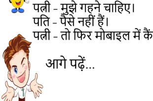 पत्नी – सुनो जी, आजकल तुम मुझसे बात क्यों नहीं करते? पति – अरे, अब मोबाइल है ना! 😂 **************************************************** पप्पू – सर, शादी और मोबाइल चार्जर में क्या समानता है? टीचर – क्या? पप्पू – दोनों की लंबाई कम ही पड़ती है। 🤣 **************************************************** पति – मैं तुम्हें सपनों की रानी बना दूँगा। पत्नी – तो फिर हकीकत में …