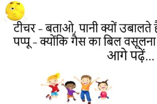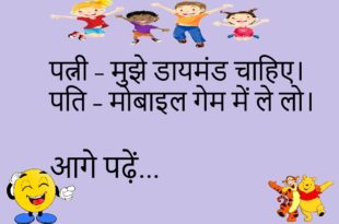 पत्नी – मेरी उम्र कितनी लगती है? पति – व्हाट्सएप स्टेटस में जितनी डली है। **************************************** दोस्त – तेरे पापा क्या करते हैं? पप्पू – मेरी गलतियाँ ढूँढते हैं। **************************************** पति – बीवी से – मैं बिना तुम्हारे जी नहीं सकता। बीवी – तो मर क्यों नहीं जाते? **************************************** टीचर – मोबाइल का आविष्कार किसने किया? छात्र – जिसे बीवी …
