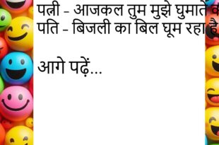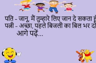 पति – जानू, मैं तुम्हारे लिए जान दे सकता हूँ। पत्नी – अच्छा, पहले बिजली का बिल भर दो।😊😊😊😊😊 **************************************** दोस्त – तुझे नींद क्यों नहीं आ रही? पप्पू – बीवी ने खर्राटों में हॉर्न बजाना शुरू कर दिया है।😊😊😊😊😊 **************************************** पत्नी – सुनो, सपना आया कि तुम मुझे हीरे का हार दे रहे हो। पति – तो नींद क्यों …