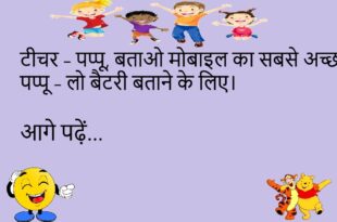 टीचर – बताओ, पढ़ाई क्यों जरूरी है?बच्चा – ताकि मोबाइल की बैटरी खत्म होने पर भी टाइमपास कर सकें।😊😊😊😊 *********************************************** पति – सुनो, तुम मुझसे प्यार करती हो या मेरे पैसों से?पत्नी – दोनों से।पति – कैसे?पत्नी – पैसा मेरा और प्यार तुम्हारा।😊😊😊😊 *********************************************** डॉक्टर – आपको क्या तकलीफ़ है?मरीज – नींद बहुत आती है।डॉक्टर – तो दवा चाहिए या …